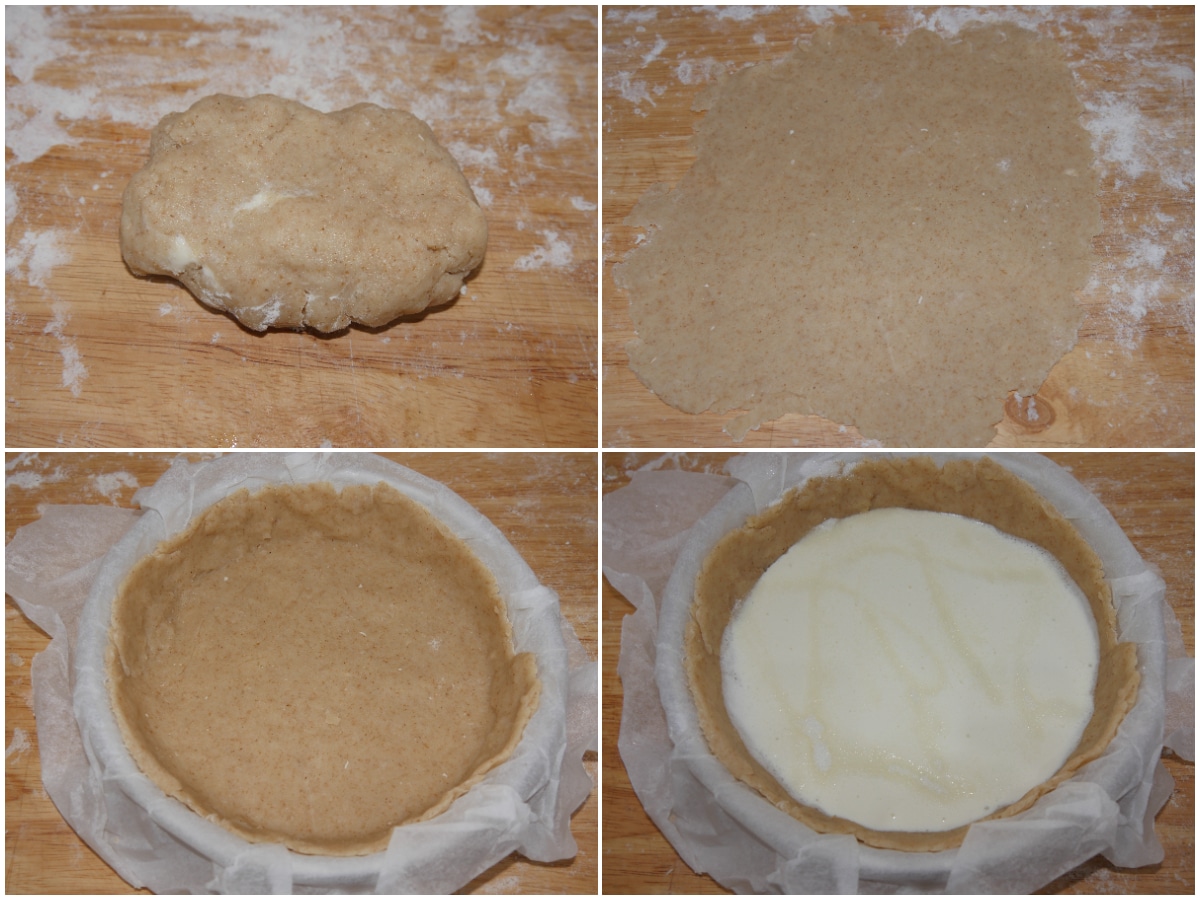 Riprendete l'impasto, stendetelo in una sfoglia irregolare ma tondeggiante e usatela per ricoprire fondo e bordi dello stampo (già rivestito di carta forno).