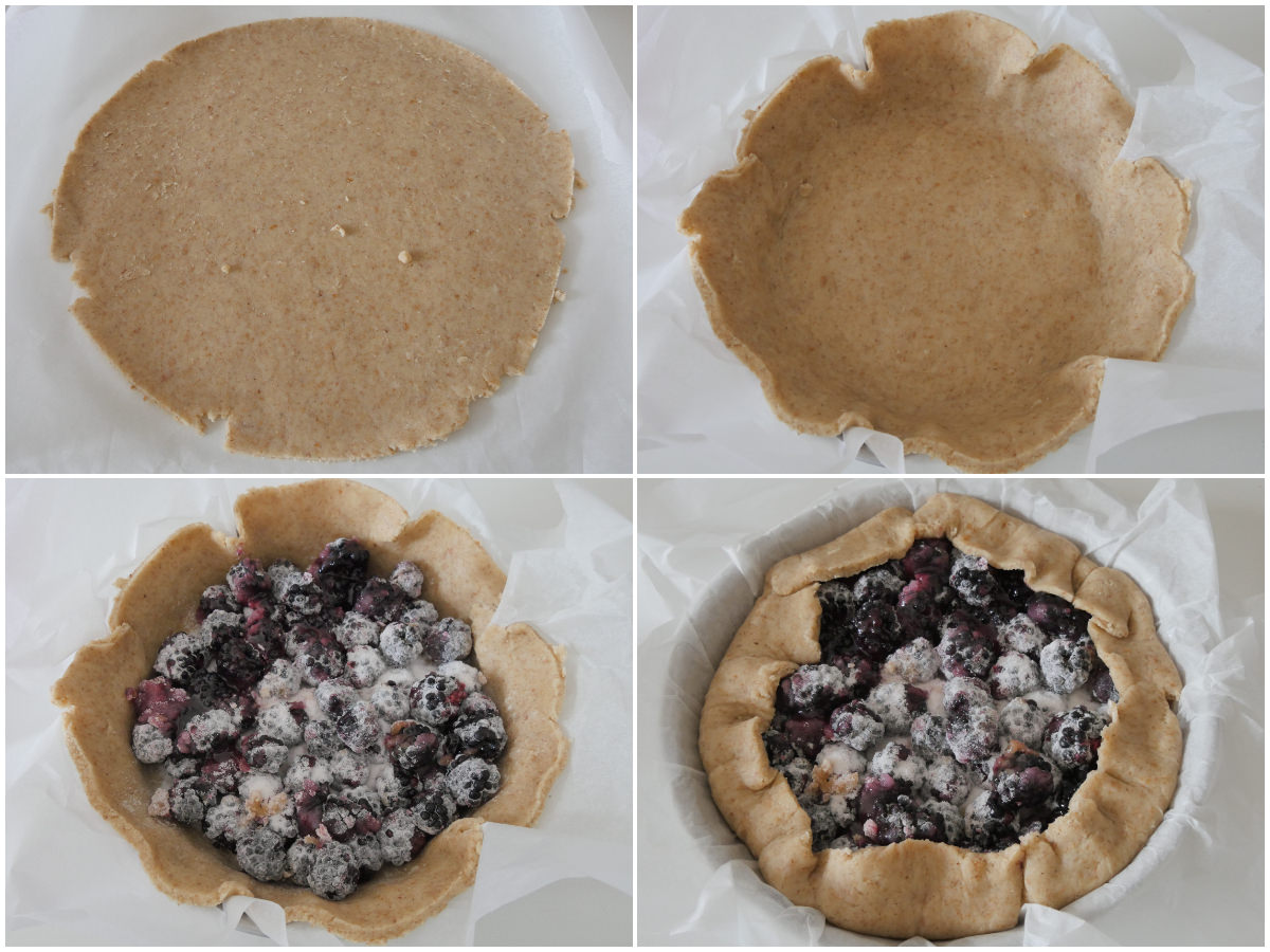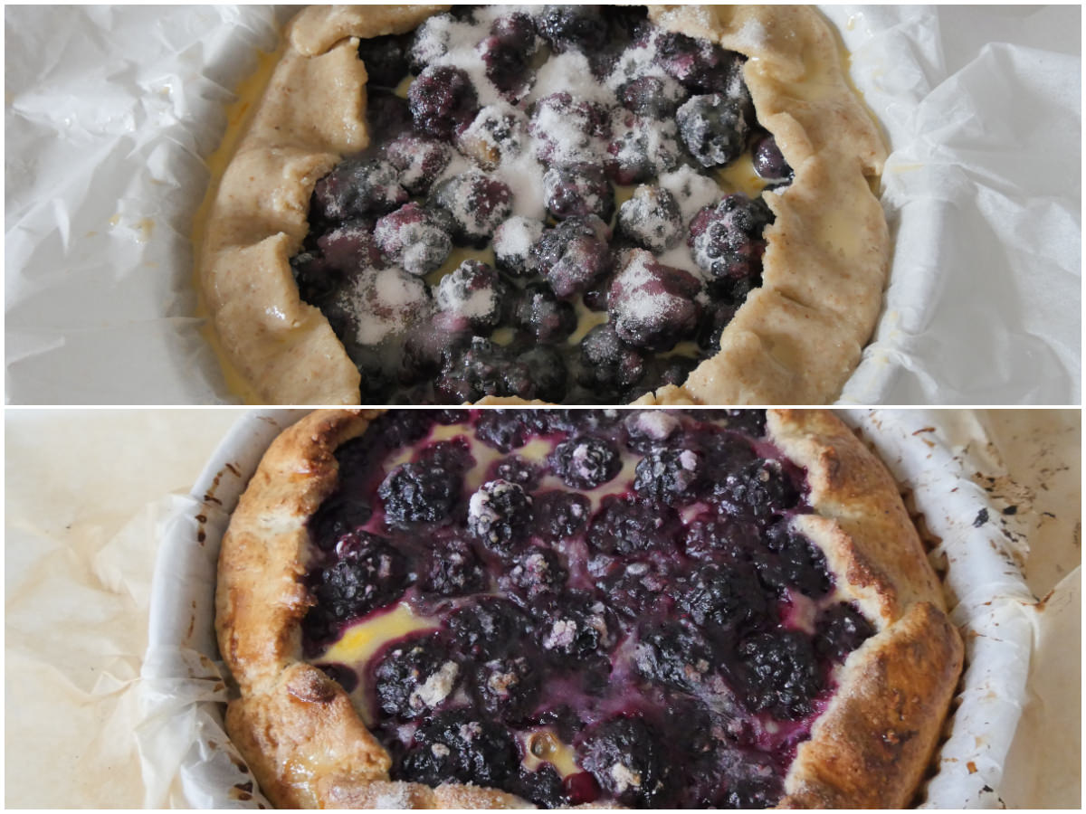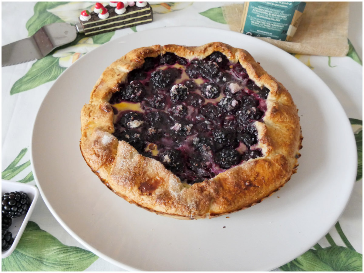 La galette alle more è il mio primo esperimento con pasta brisée integrale. La galette è una sorta di crostata di origine francese, con un ripieno gustoso e colorato, spesso a base di frutta fresca, racchiuso in un friabile scrigno croccantino, talvolta a base di pasta sfoglia (come nell'originale galette des rois), talaltra di brisée, come in questo caso. La cosa bella delle galette è che sono dei dolci (ma si possono preparare anche in versione salata) piuttosto rustici e rapidi da fare, ma d'effetto. La particolarità, infatti, è che a seconda del ripieno si possono cuocere anche senza stampo, direttamente sulla teglia del forno rivestita di carta forno (questa volta io ho evitato per via dell'uovo nella farcia). Insomma, se vi ho un minimo incuriosito, provate la ricetta e poi fatemi sapere cosa ne pensate ;)