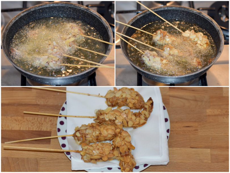 Scolate su carta da cucina, eliminate delicatamente lo spiedino e condite con poco sale.