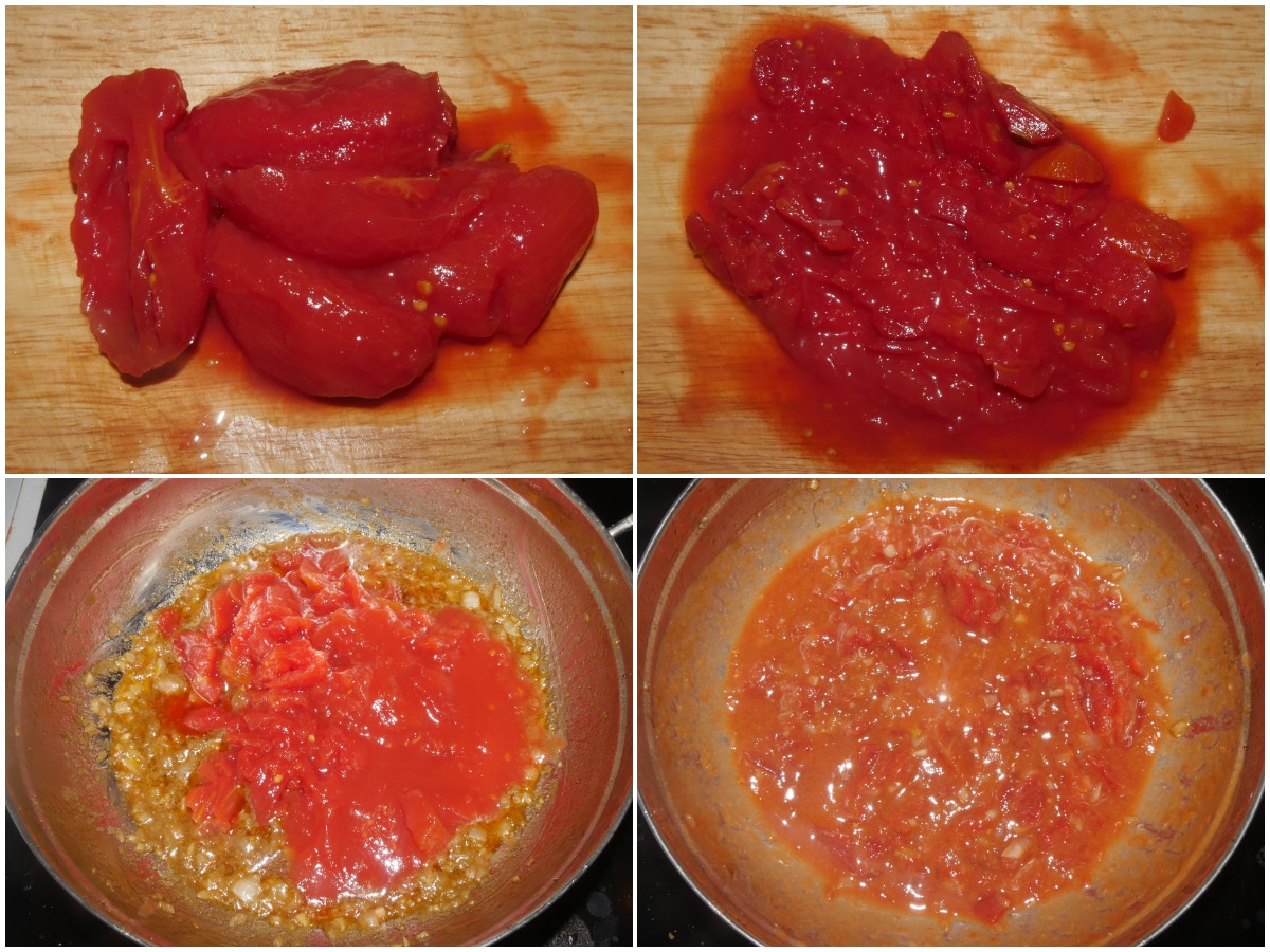 Incorporate anche la polpa di pomodoro (io avevo dei pelati e li ho semplicemente spezzettati) e lasciate insaporire.