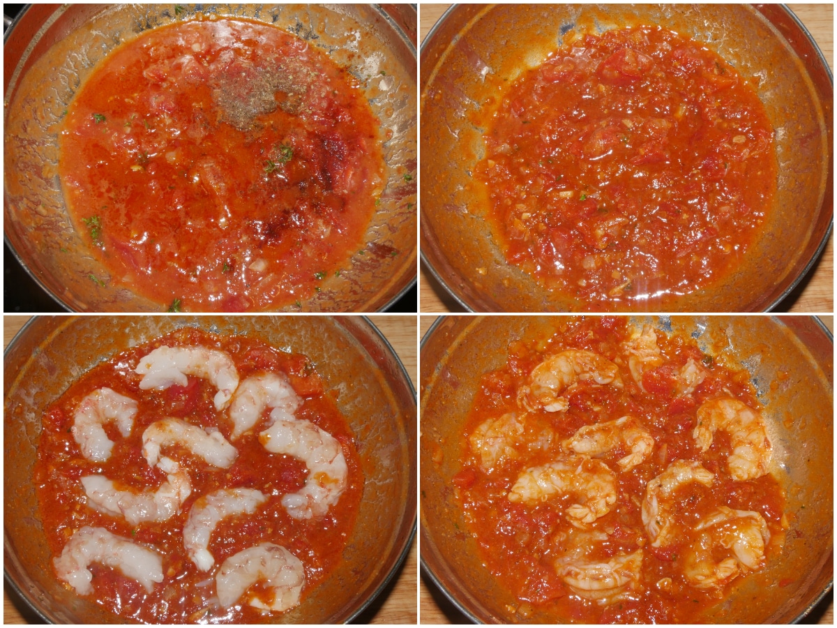 Infine aggiungete i gamberi e cuocete per pochi minuti, mescolando ogni tanto.