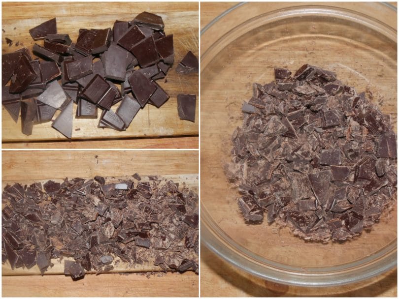Tritate il cioccolato e mettetelo in una boule di vetro.