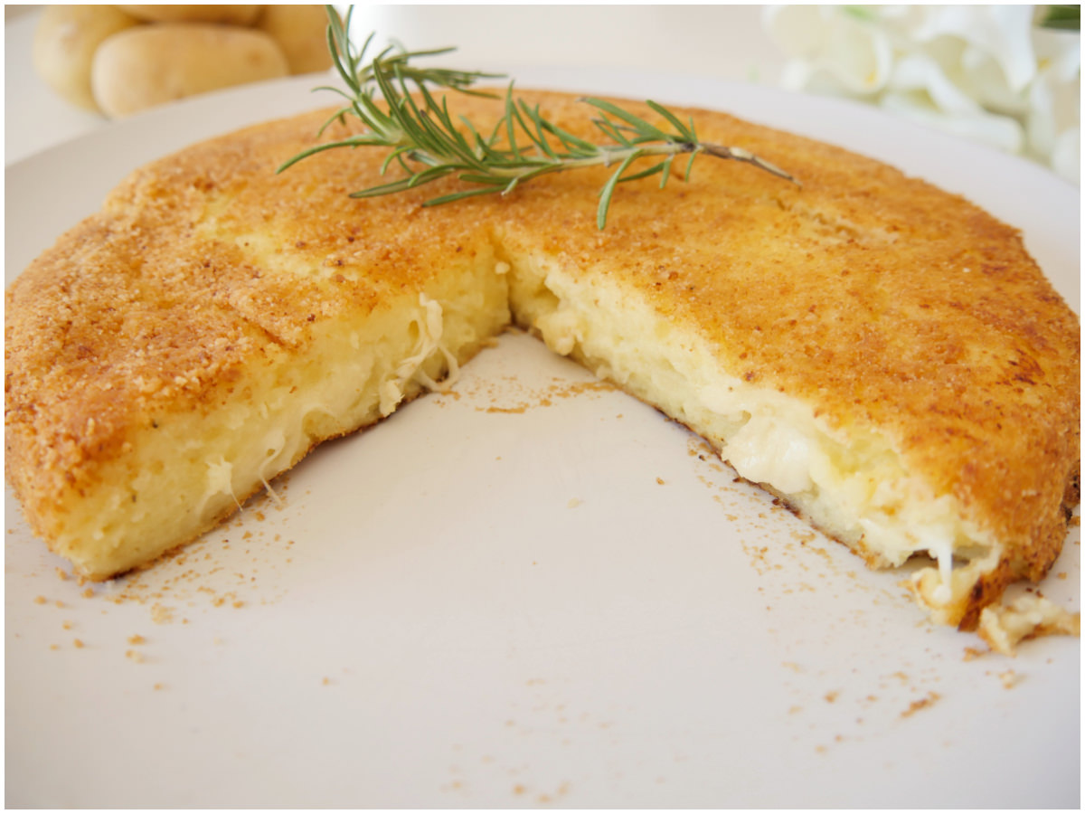 Il gateau di patate in padella è pronto: servitelo caldo o al massimo tiepido.