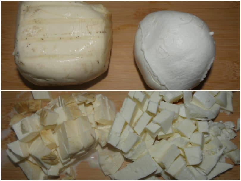 Fate sbocciolare i latticini,quindi tagliateli a cubetti.