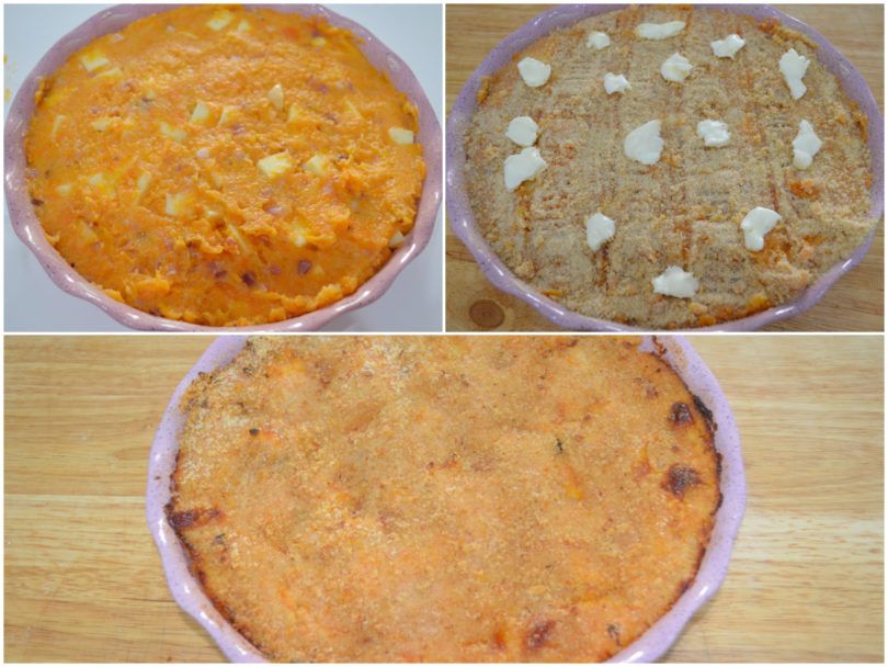Premesso che trovo che questo sito avrebbe bisogno di una revisione orto-sintattica, con particolare riferimento all’oscena punteggiatura, parimenti trovo le tue ricette favolose! Ieri ho voluto sperimentare questa. Ho usato una zucca butternut, molto soda, quindi ho avuto bisogno di sole tre patatine cotte al microonde per 1.5 kg di zucca per poterla addensare. Per il resto tutto più o meno uguale: sale, grana grattugiato, burro, speck, provola, aromi vari (pepe, noce moscata, rosmarino e prezzemolo. Ho dimenticato l’erba cipollina), gratinatura in superficie. A mio avviso il piatto era semplicemente delizioso. I miei commensali non lo hanno mangiato con altrettanto entusiasmo perché lo paragonavano costantemente al gattò di patate: avrei dovuto servirlo come sformato anziché come gattò!