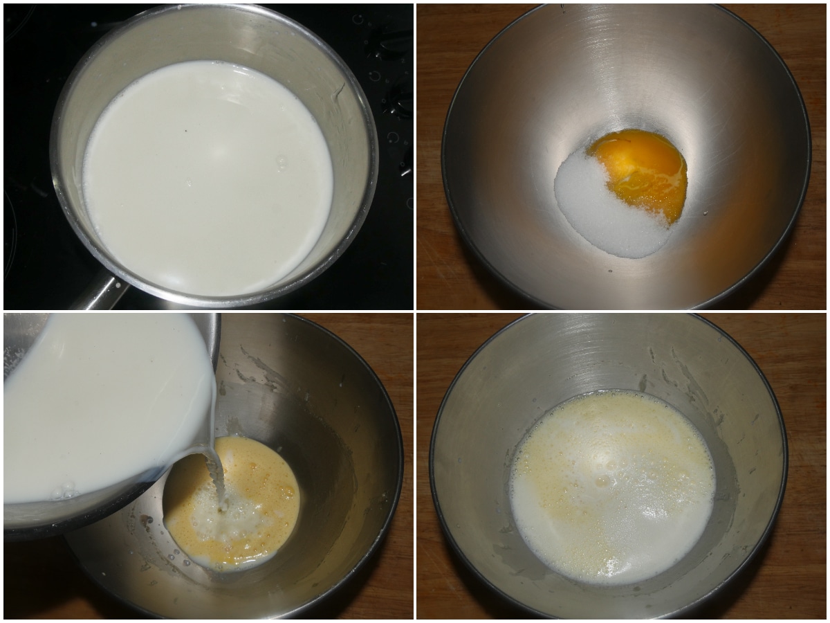 Montate i tuorli con lo zucchero poi versare il latte a filo sul composto di uova.