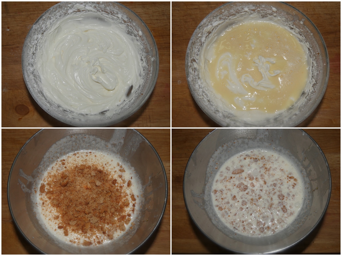 Rompete in modo grossolano gli amaretti ed uniteli al composto, mescolandoli delicatamente con un cucchiaio.
