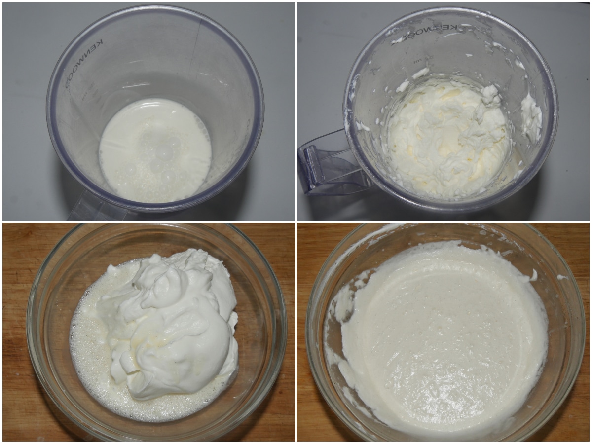 Montate la panna e incorporatela al composto, poi mettete il composto in frigorifero per 4 ore.