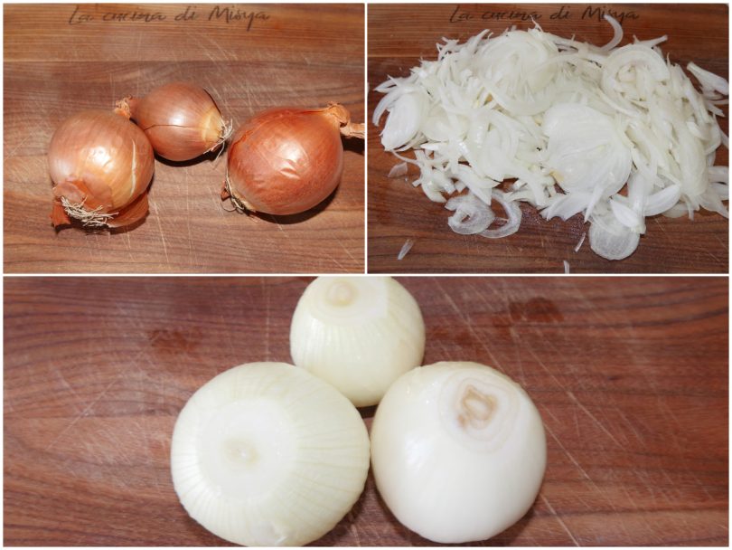 Innanzitutto mondate le cipolle e tagliatele a fettine sottili.