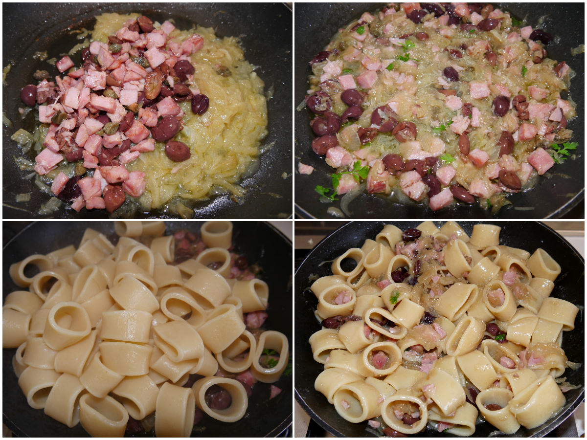 Quando cipolle, tonno e pasta saranno pronti, aggiungete il tonno alle cipolle, mescolate e unite prezzemolo fresco e pasta scolata ben al dente e fate insaporire velocemente a fiamma alta.