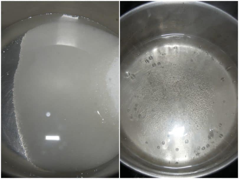In un pentolino dal fondo spesso, fate sciogliere lo zucchero in acqua fino ad ottenere uno sciroppo di zucchero.