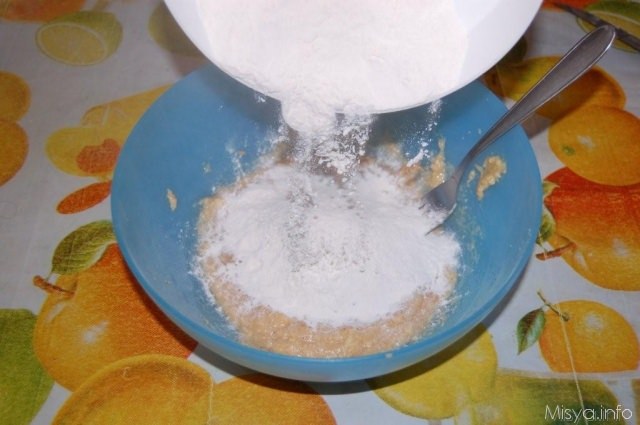 Aggiungere la farina e lievito facendola assorbire man mano all'impasto.