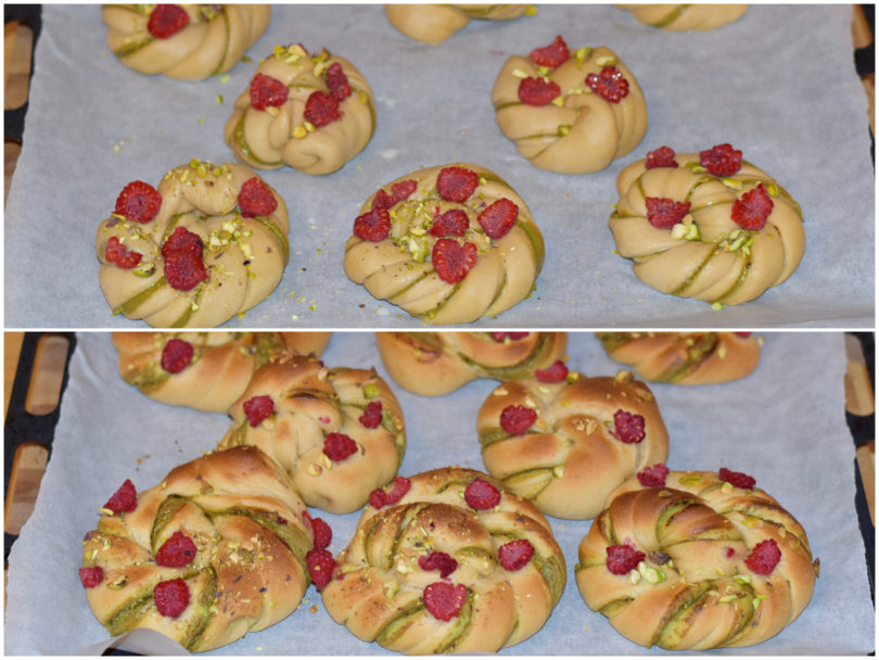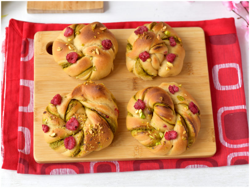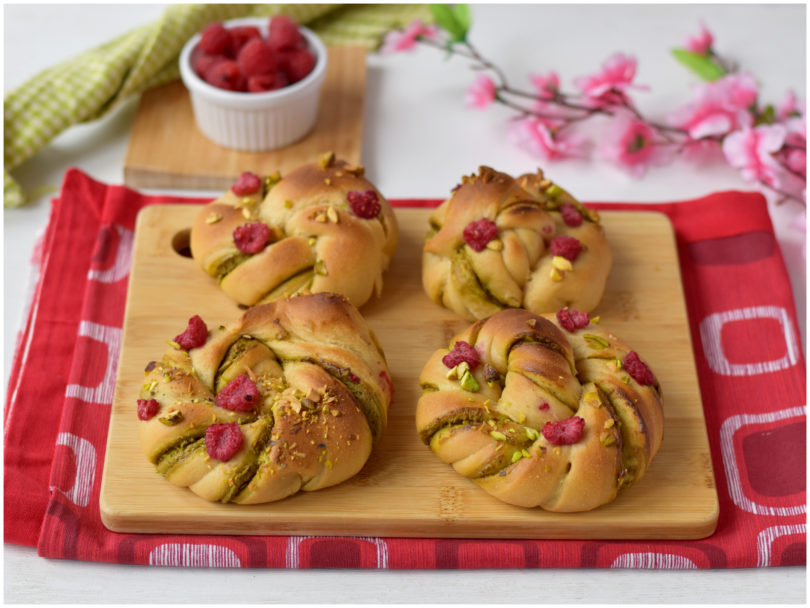 Dopo il mio primo esperimento di brioche vegana, eccovi una deliziosa ricetta di girelle pistacchi e lamponi, creata dalla bravissima Carlotta Perego di Cucina Botanica. Queste briochine sono completamente vegane, ma non temete, il risultato sarà un concentrato di morbidezza e gusto che conquisterà tutti i palati. Realizzate con ingredienti semplici, queste girelle sono leggere e soffici, perfette per una colazione o una merenda golosa. Il ripieno di crema spalmabile al pistacchio conferisce loro un sapore irresistibile, mentre i lamponi aggiungono una nota fresca e fruttata. Potete anche personalizzarle aggiungendo altre varianti, come gocce di cioccolato o frutta secca al posto di pistacchi e lamponi. Inoltre, questa ricetta è adatta a tutti, compresi intolleranti e allergici a latte e uova, garantendo a tutti di poter gustare una prelibatezza senza compromessi. Provatela e lasciatevi conquistare dalla bontà di queste girelle pistacchi e lamponi!