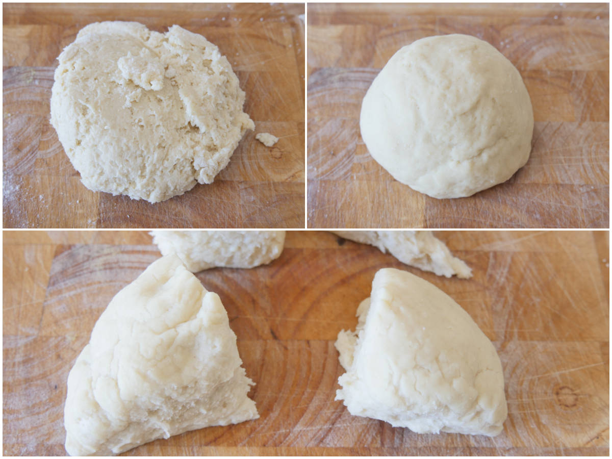 Trasferite il composto su un piano infarinato e lavoratelo velocemente fino a renderlo completamente omogeneo, quindi lasciatelo raffreddare (io l'ho diviso in più parti per velocizzare il raffreddamento).