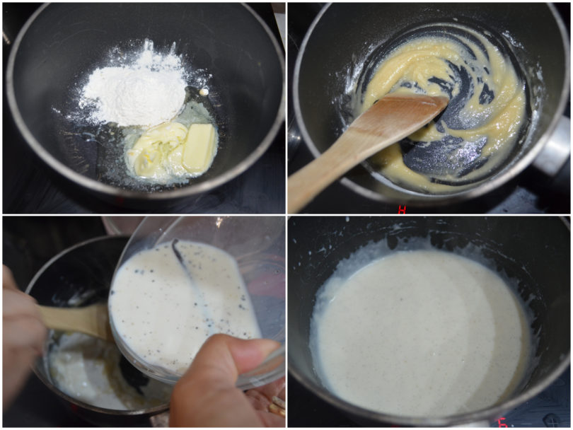 A parte, fate sciogliere il burro a fiamma bassa, quindi aggiungete la farina e amalgamate.