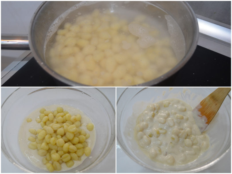 Cuocete gli gnocchi e scolateli non appena salgono a galla, quindi mescolateli alla besciamella.