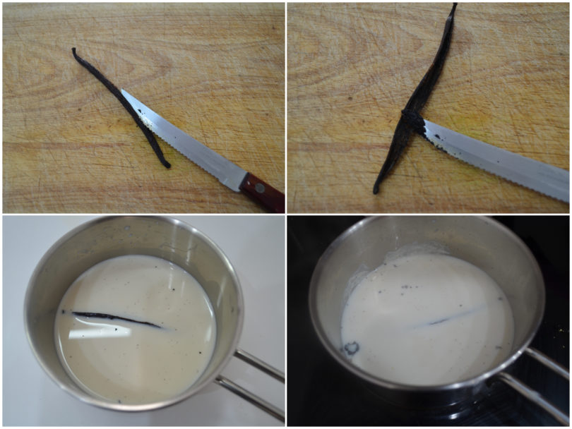 Innanzitutto aromatizzate il latte: aprite la bacca nel senso della lunghezza, estraete i semini con la lama di un coltello, quindi mettete bacca e semi nel latte e portate a bollore.