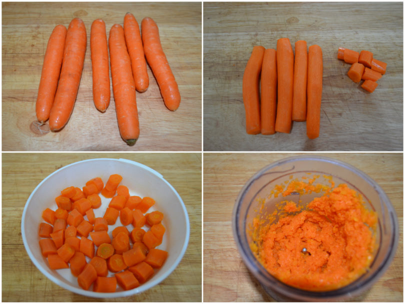 Innanzitutto pelate le carote, eliminate le estremità, lavatele, asciugatele e tagliatele a tocchetti.
