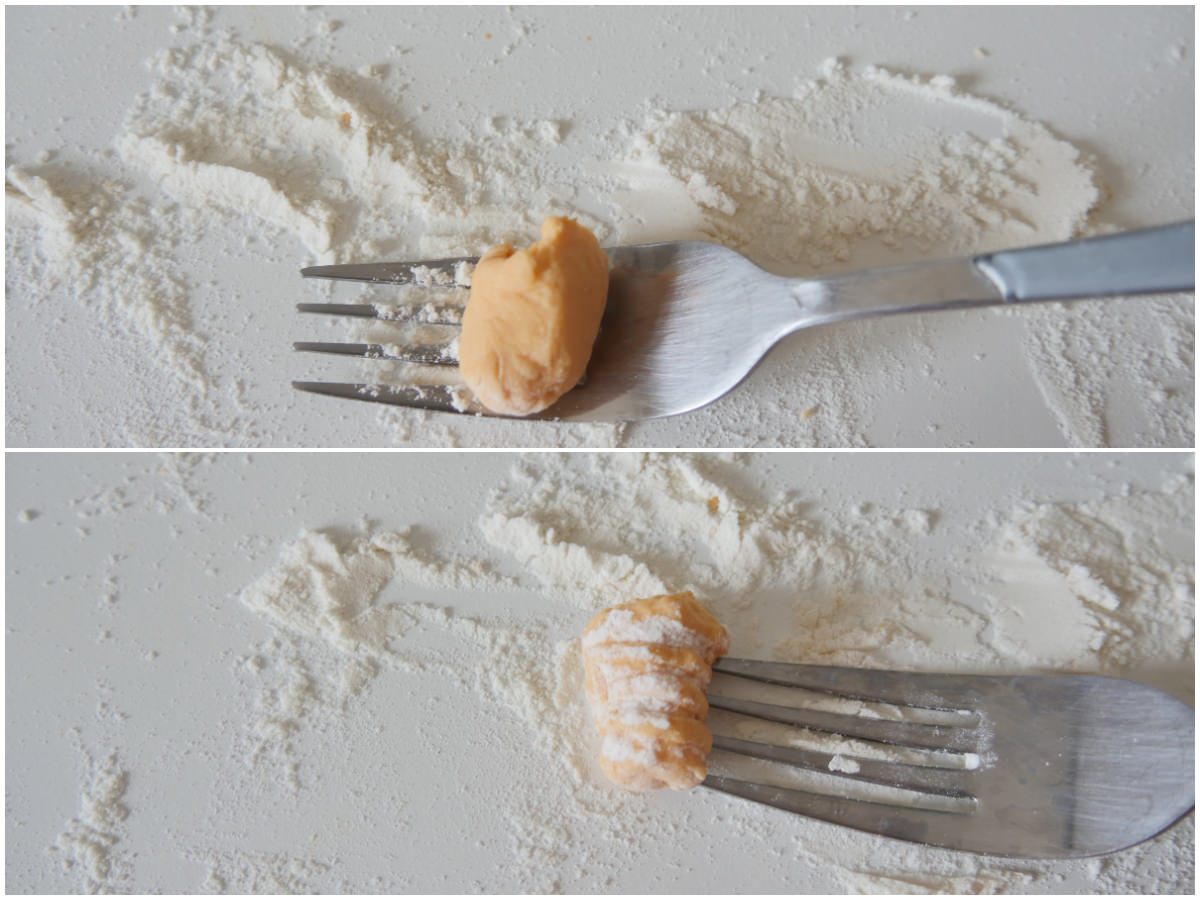 Rigate gli gnocchi passandoli velocemente sui rebbi di una forchetta, in modo da dargli il tipico aspetto.