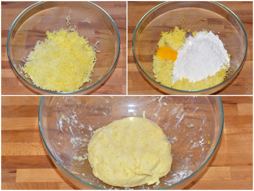 Unite tuorlo, farina e un pizzico di sale e impastate velocemente fino ad ottenere un panetto omogeneo.