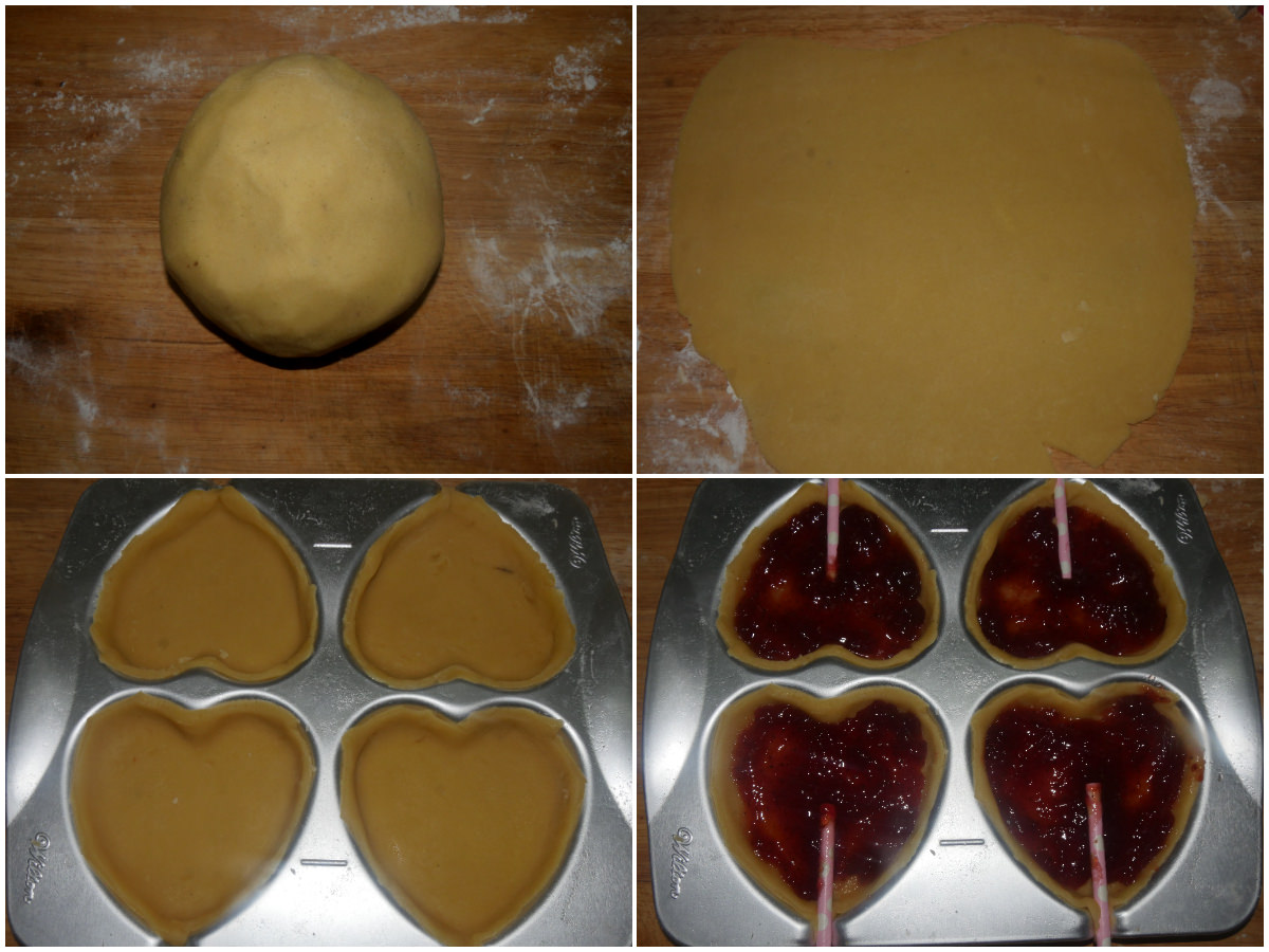 Le heart tarts sono delle simpatiche crostatine a forma di cuore, che ho ben pensato di infilare su uno stecco da gelato per servirli come se fossero dei cake pops ;) Carine da vedere, sono perfette anche se volete organizzare una serata a tema, magari usandole come segnaposti. Io le ho farcite con della marmellata di fragole per rispettare il tema del rosso, ma volendo potete usare anche anche della Nutella, se preferite. Per i decori io ho creato delle guarnizioni a tema con un po' di ghiaccia all'acqua, ma potete anche usarla per scrivere i nomi dei commensali, ad esempio. Insomma, spero di avervi dato un'idea originale per la serata e colgo l'occasione per augurare buon San Valentino a tutti!