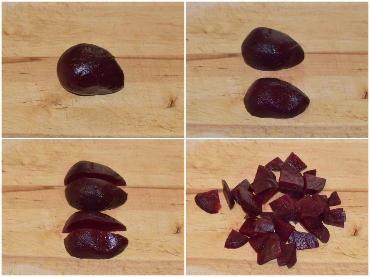 Pelate anche la barbabietola e tagliate anche questa a cubetti.