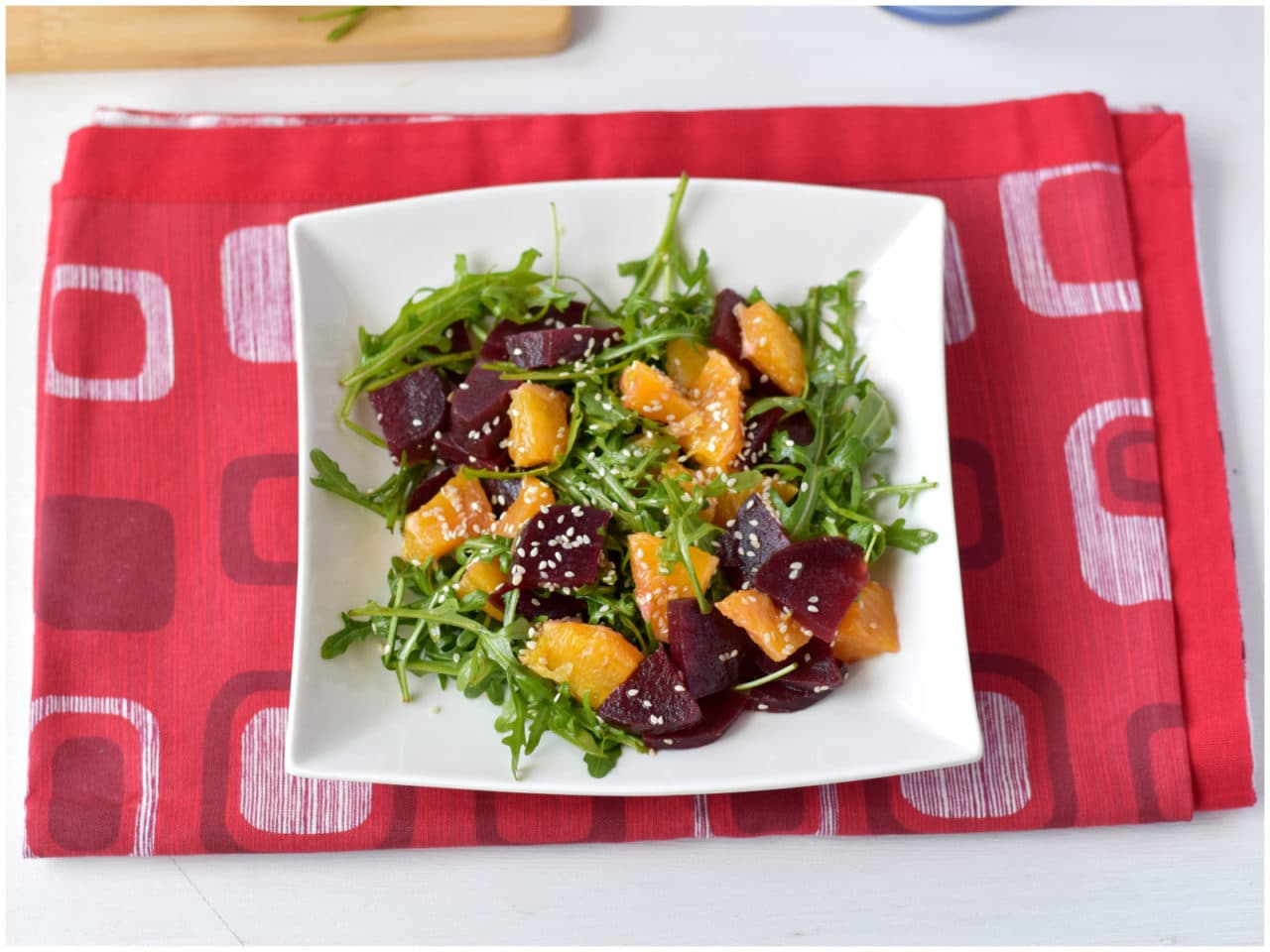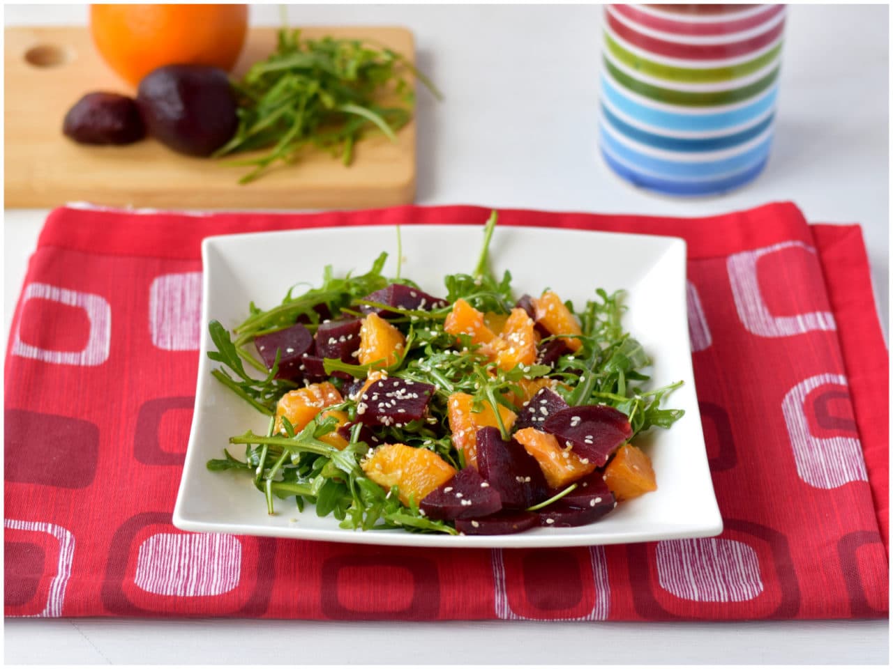 L'insalata barbabietole e arance è pronta, non vi resta che servirla.