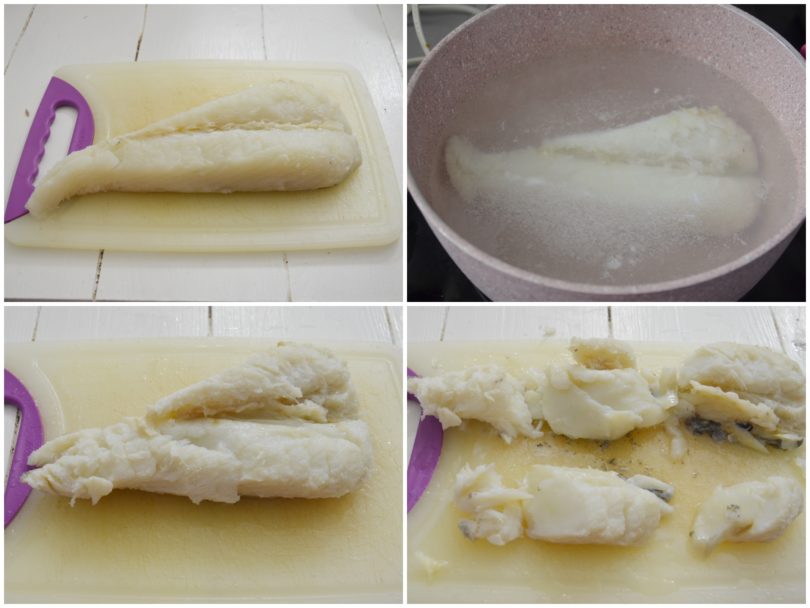 Spinate il pesce e sciacquatelo, quindi sbollentatelo per almeno 5 minuti senza salare l'acqua.