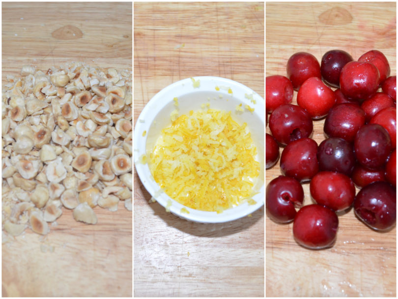 Pelate e grattugiate lo zenzero e mischiatelo con la buccia di limone, quindi lavate e denocciolate le ciliegie.