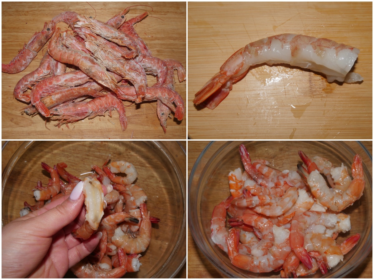 Innanzitutto pulite i gamberi eliminando teste, carapaci e filetti neri (qui la guida per farlo al meglio).