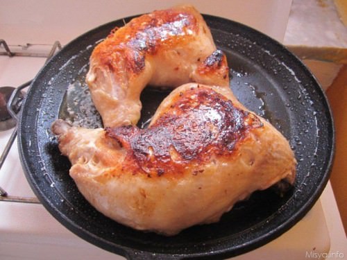 Far arrostire il pollo su una piastra, coprirlo con un coperchio e far cuocere per 40 minuti circa.