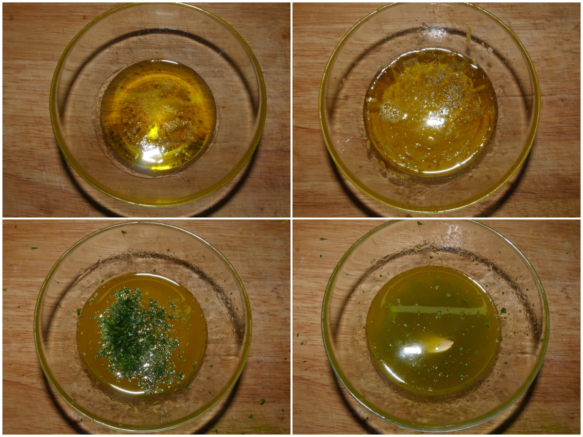 Nel frattempo che il polpo si raffredda, preparate la citronette, emulsionando ale, pepe, olio, buccia e succo di limone, prezzemolo tritato.