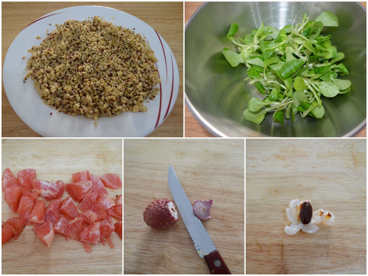 L'insalata di quinoa e pompelmo è un piatto sfizioso e diverso dal solito. L'ingrediente più particolare è il litchi, che potete eventualmente sostituire con uva, e non lo trovate. Il risultato sarà un'insalata ricca, fresca e saporita, perfetta per portare una ventata di allegria sulla tavola invernale. Se anche voi avete voglia di disintossicarvi un po' dagli stravizi delle ultime settimane, questa insalata di quinoa e pompelmo potrebbe fare proprio al caso vostro ;)