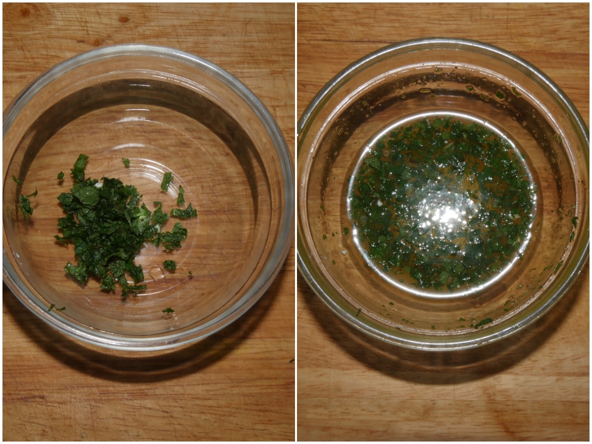 Preparate gli ingredienti: scolate e sciacquate i ceci, lavate e tagliate i pomodorini, pulite e spezzettate il basilico; quindi mettete sale, pepe, menta spezzettata, miele, limone, aceto e olio in una ciotola ed emulsionate.