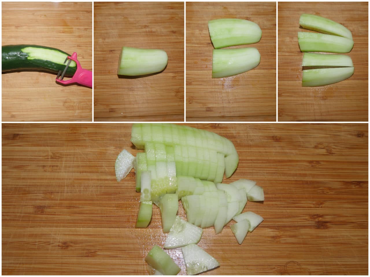 Pelate e tagliate a cubetti il cetriolo.