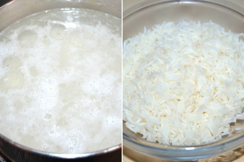Cuocete il riso in abbondante acqua salata poi scolatelo al dente, condite con un filo d'olio e fatelo raffreddare.