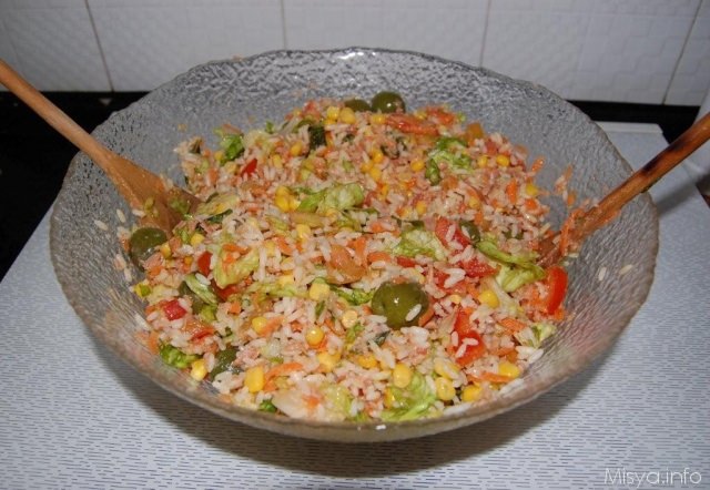 Questa mattina più che la ricetta, vi racconto come prepariamo l'insalata di riso a casa mia. C'è chi la prepara con i sottaceti, chi con l'aggiunta di uova sode, chi aggiunge pezzetti di pollo e formaggio, a casa mia la prepariamo solo con le verdure e l'aggiunta di tonno. Sin da piccola mia mamma l'ha sempre preparata così ed io associo l'idea di insalata di riso a questa e ogni variazione sul tema mi sembra una stranezza, come aggiungere gli insaccati nel gateaux di patate.. strani scherzi fa il palato e soprattutto le ricette che ci accompagnano dall'infanzia con tutto il loro carico di ricordi. Buon sabato amiche mie da parte mia e della cucciolina che trotterella felice nel mio pancino :D