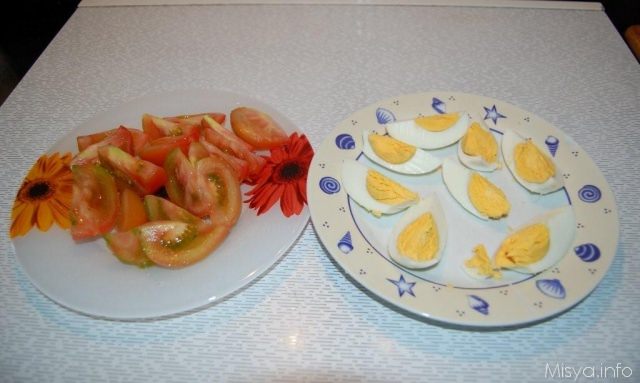 Sbucciate le uova sode ormai fredde e tagliatle a spicchi