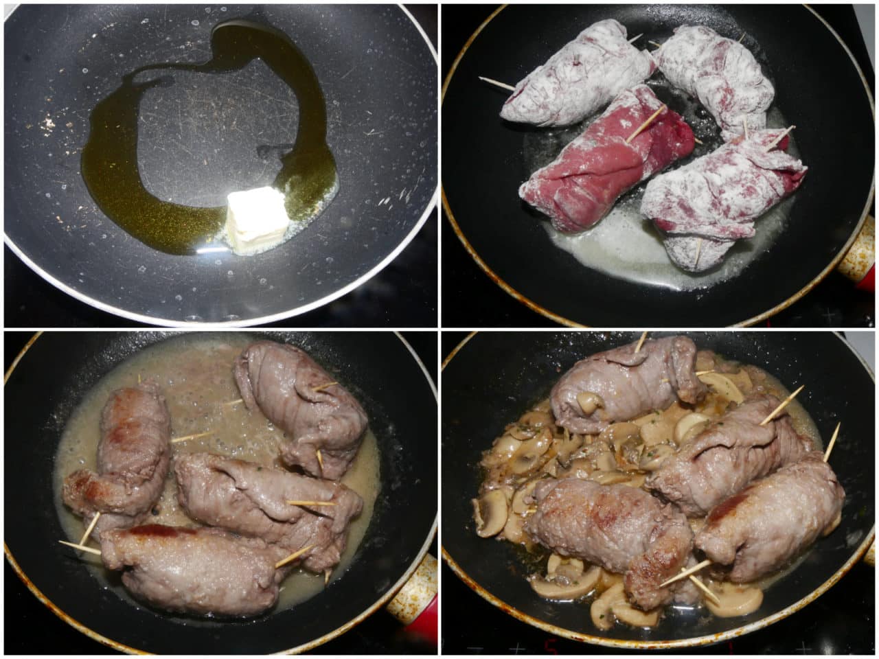 Infarinate gli involtini e fateli rosolare in padella antiaderente con un po' di olio.