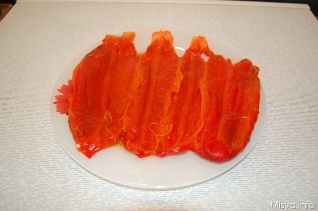 Una volta raffreddati i peperoni,eliminate loro la pelle e togliete i semini interni.