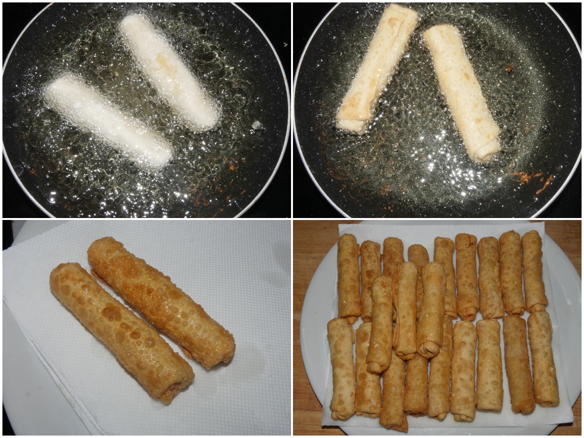 1) Mai visti in vita mia le sfoglie degli involtini a base quadrata. Nemmeno in Tailandia, ma sicuramente è una variante che non conosco.