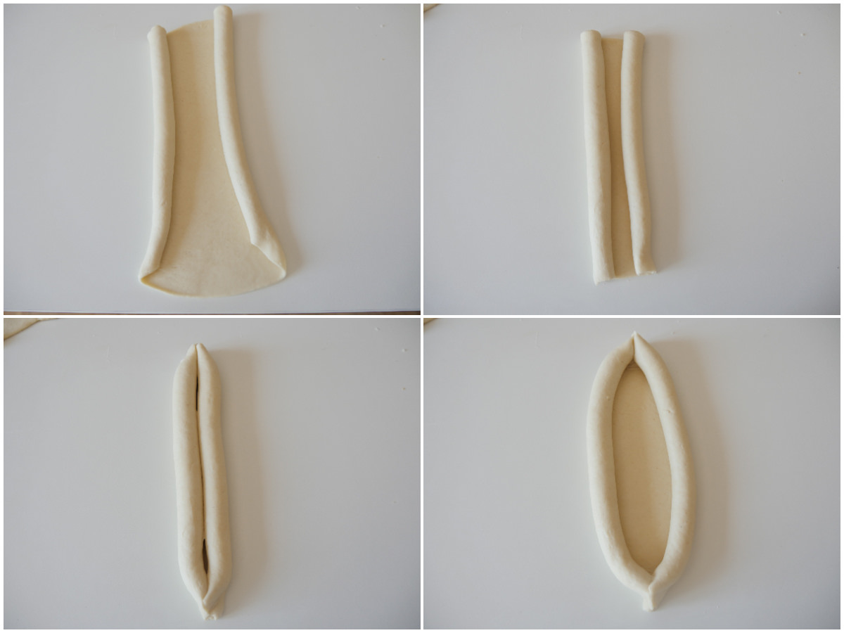 Arrotolate i due lati verso il centro, lasciando un paio di cm centrali, quindi unite le due estremità dei rotolini, stringendole tra le dita, e allargate la parte centrale per formare una barchetta.