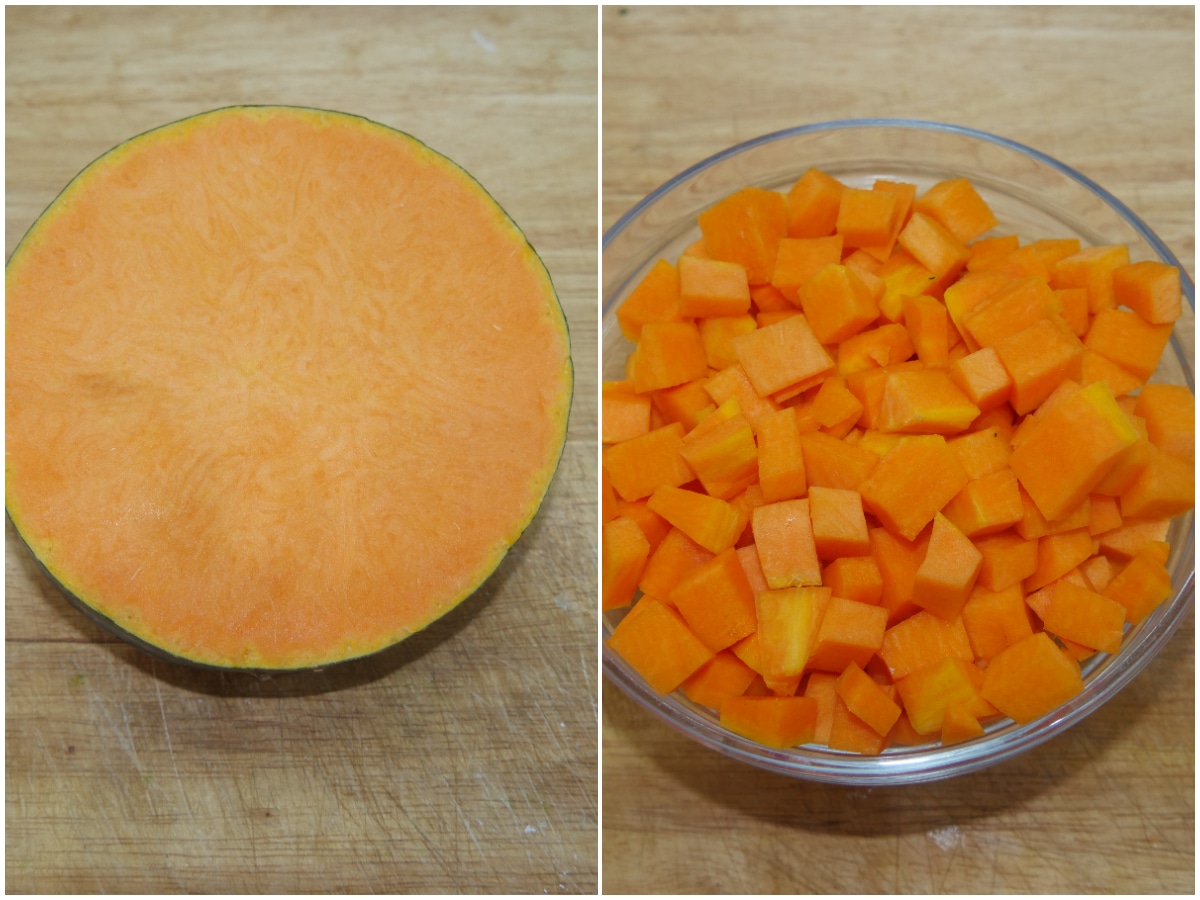 Tagliate la zucca a dadini piccoli, così che cuociano velocemente.