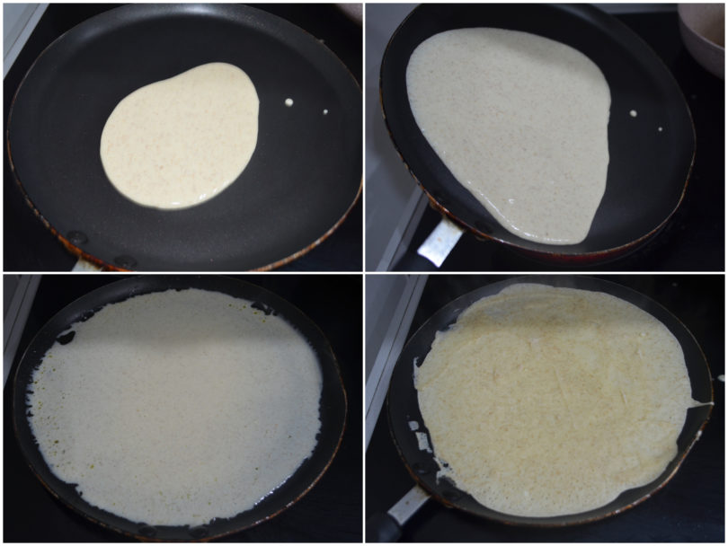 Quando i bordi inizieranno a dorarsi e a staccarsi, girate delicatamente la crêpe con una spatola e cuocete rapidamente anche il secondo lato.