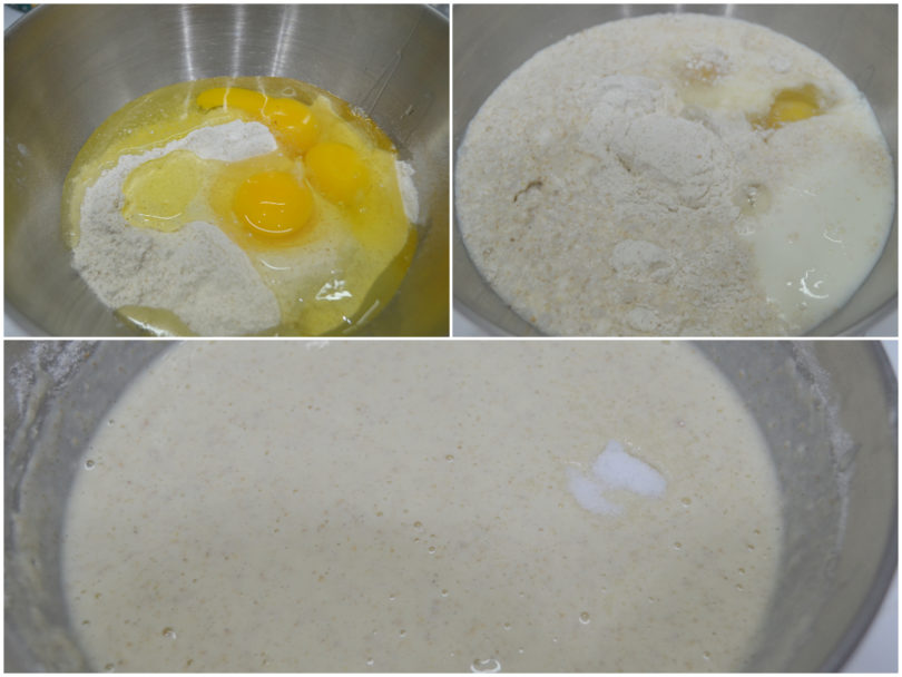 Aggiungete una presa di sale, quindi amalgamate fino ad ottenere una pastella omogenea.