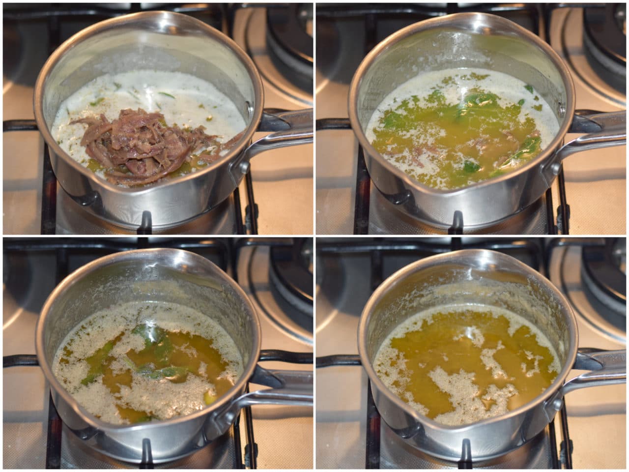 Aggiungete anche i filetti di acciuga (meglio se sminuzzati) e lasciateli sciogliere nel condimento, a fiamma bassa.