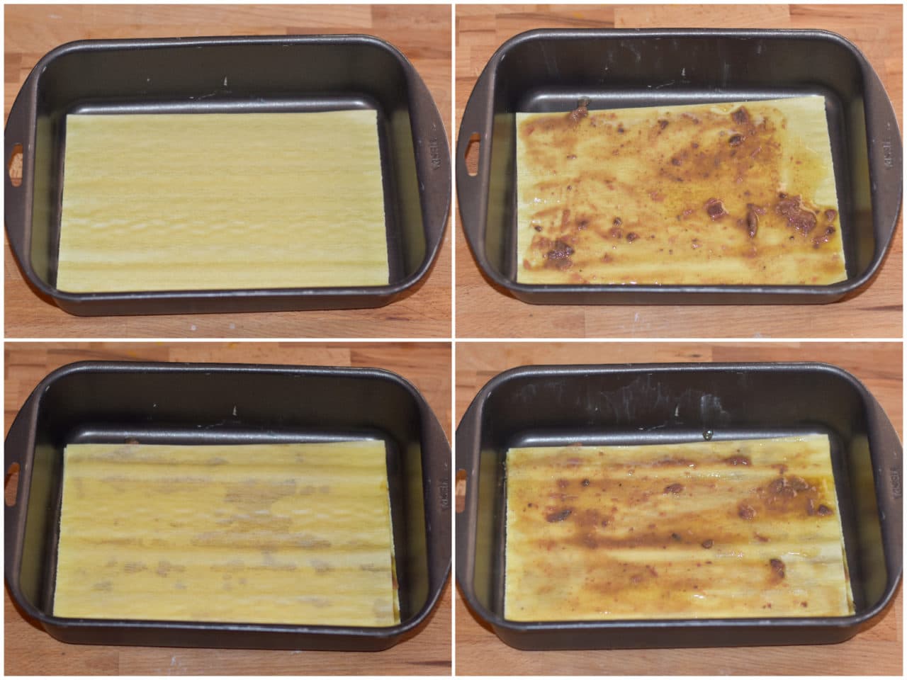 Componete le lasagne in una pirofila adatta alla cottura in forno, alternando strati di pasta (attenzione: se avete preso pasta che necessita di cottura ricordatevi di lessarla prima dell'utilizzo) con la salsa alle acciughe.
