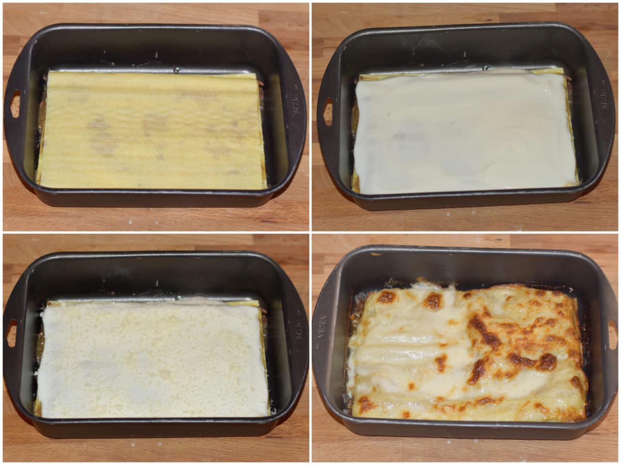 Completate in cima con besciamella e parmigiano e cuocete per circa 30 minuti o fino a leggera doratura in forno statico preriscaldato a 180°C.
