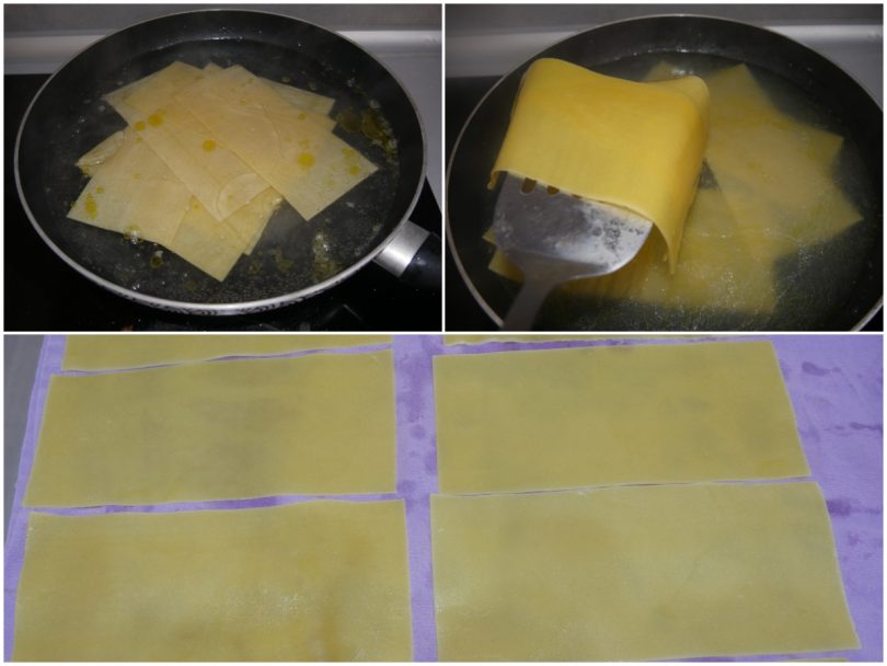Sbollentate le sfoglie di lasagna in una pentola con abbondante acqua in cui avrete aggiunto il sale ed un cucchiaio di olio