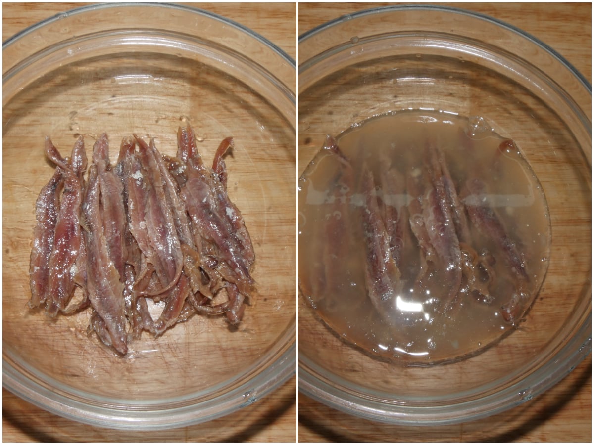 Pulite le alici ricavandone i filetti(qui la guida per farlo al meglio) e lasciatele marinare per 15 minuti con i succo di limone.